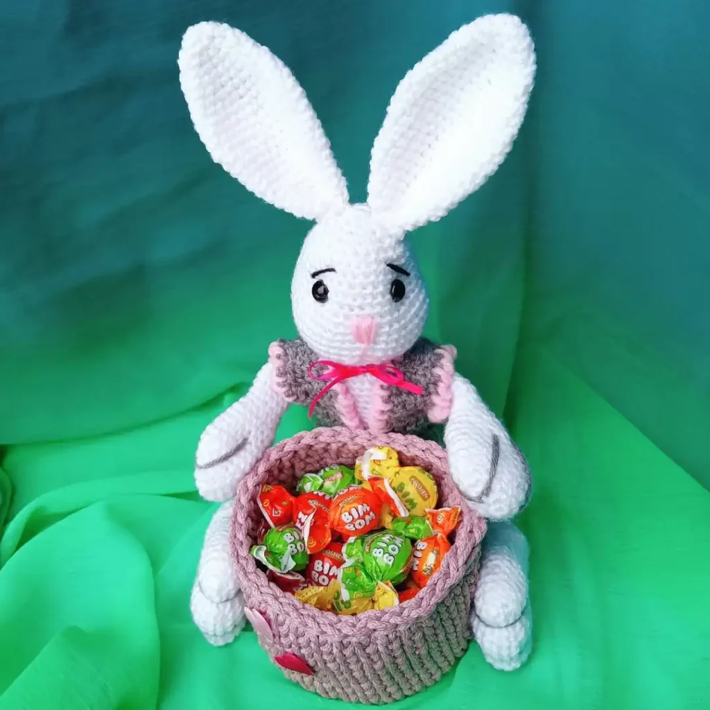 Jak zrobić królika z koszyczkiem na szydełku?